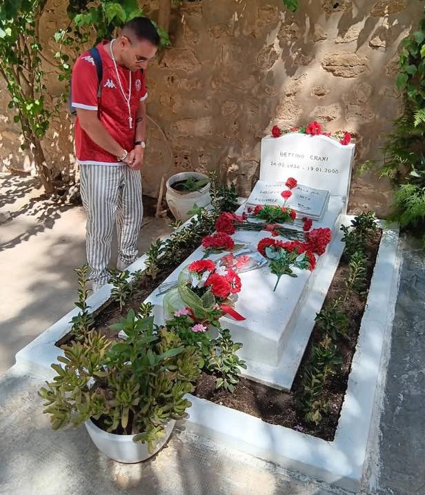 Il giovane in pellegrinaggio alla tomba del martire socialista Bettino ad Hammamet